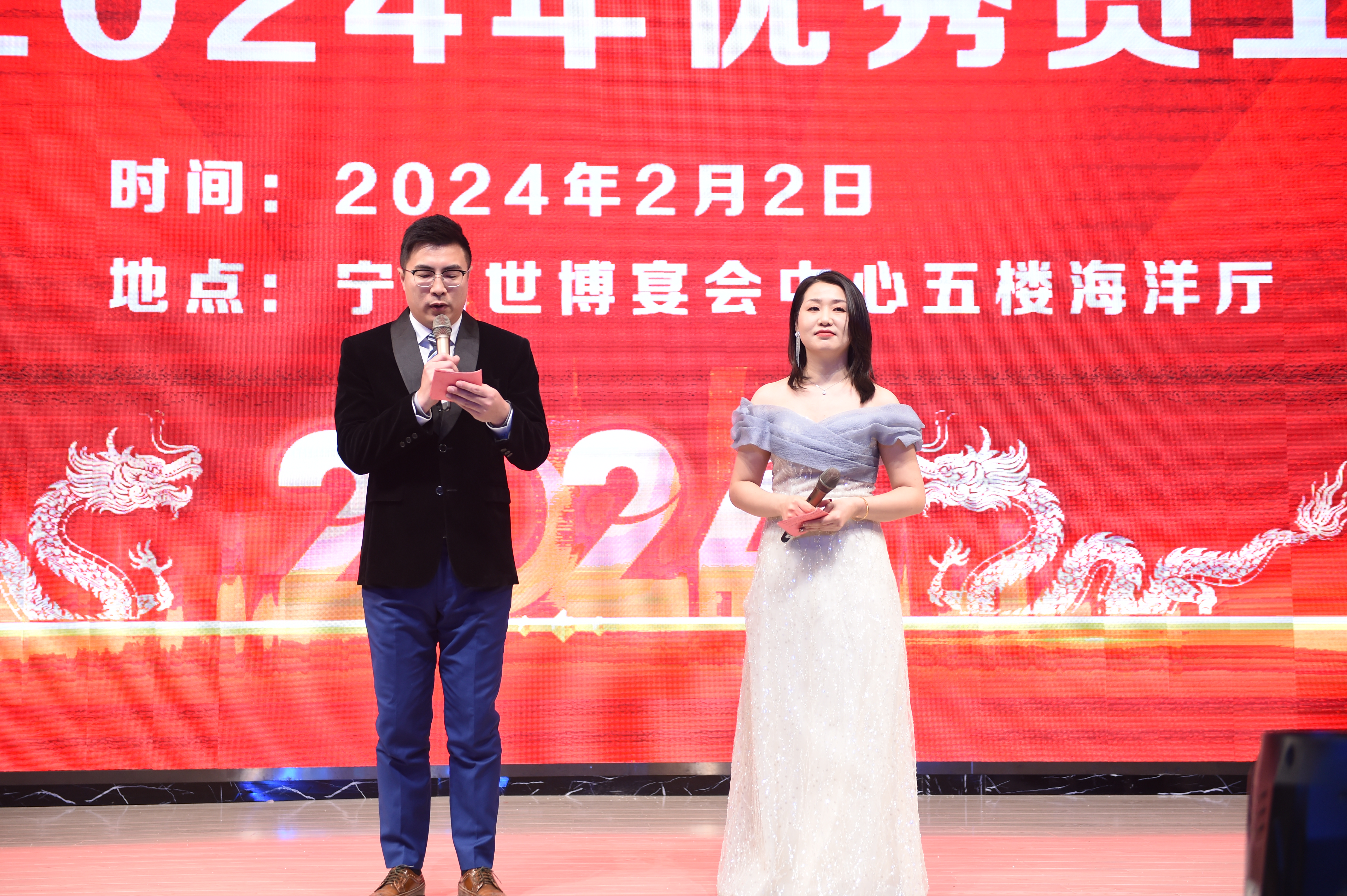 龍騰虎躍慶盛事,馬到功成事業(yè)興,安徽瑞普橡塑有限公司年會由國際貿(mào)易部經(jīng)理和人力資源部經(jīng)理擔(dān)任主持人,瑞普2024年會在倆位主持人簡單而又大氣的開場白下正式拉開序幕。