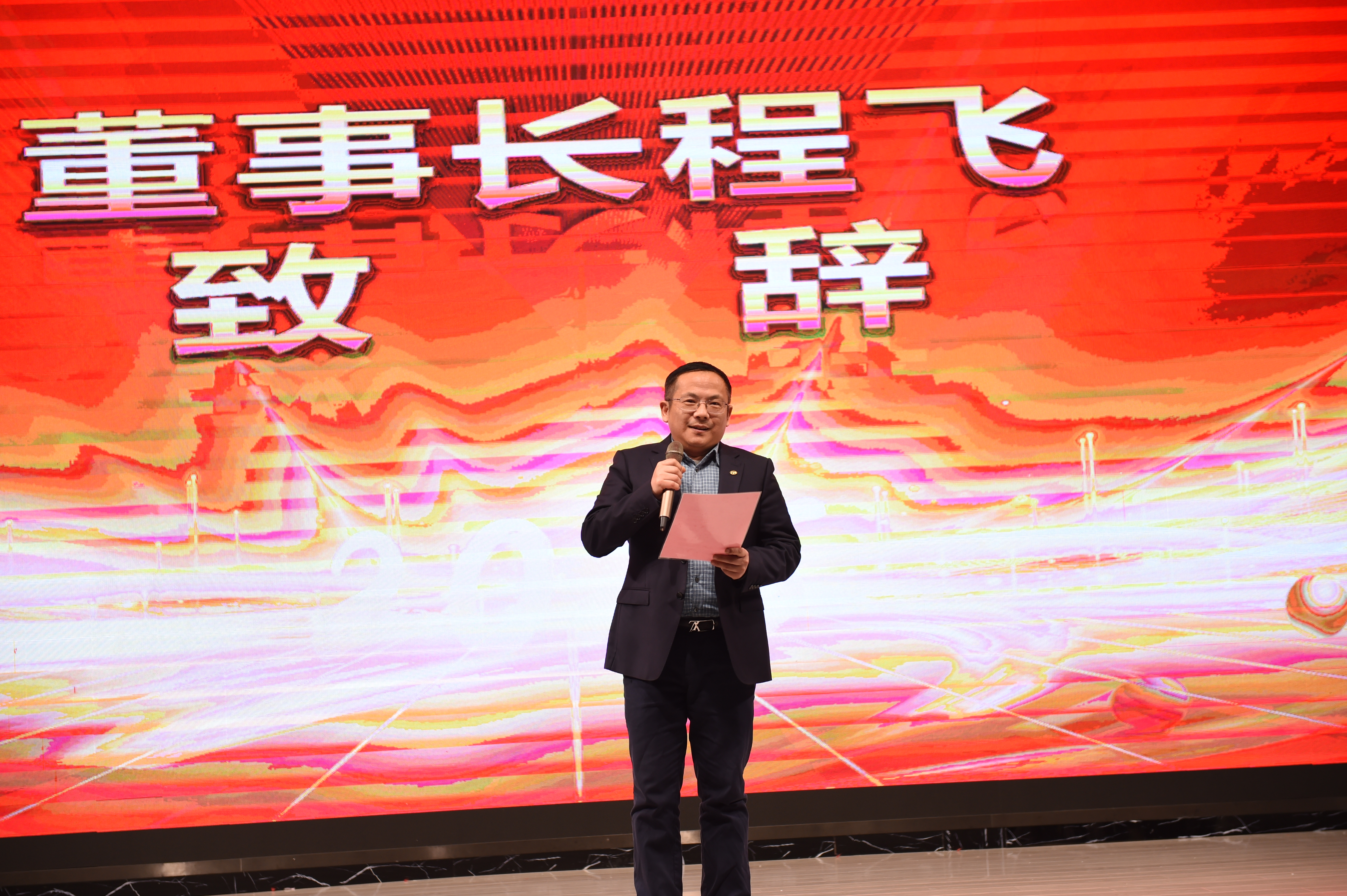 年會及頒獎典禮開始前,由公司董事長程飛先生進(jìn)行了慷慨激昂的發(fā)言,董事長首先對公司全體員工致以最誠摯的祝福和熱烈的問候,其次對新的一年向大家提出了建設(shè)性意見,希望公司在全體員工的共同努力下,能以精益至臻、與時俱進(jìn)的面貌迎接新的挑戰(zhàn)。最后,董事長宣布此次年會及頒獎典禮正式開始!